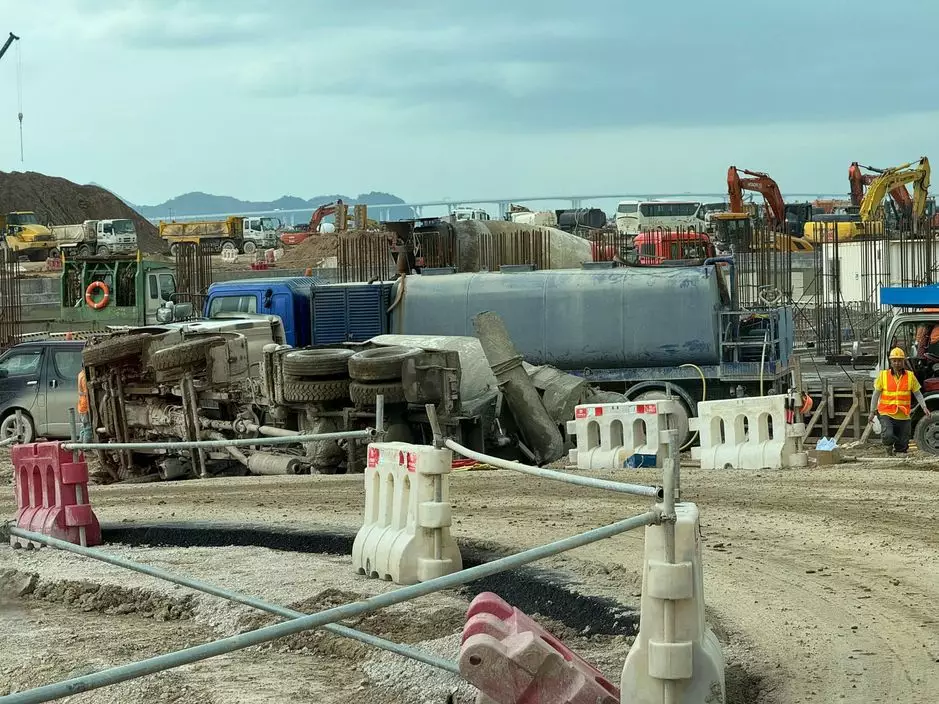 警方中午約1時22分接報,指機場三跑地盤有一輛混凝土車意外翻側,壓傷一名男工。