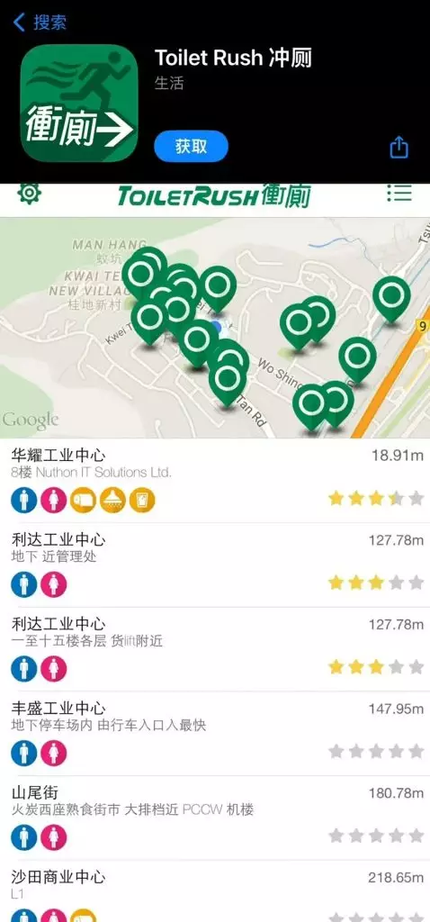 而這位網友也真人測試並大讚廁所APP好用,包括覆蓋全港超過8000間廁所、公廁及育嬰室資料,並提供導航服務及預覽設施,甚至連廁所臭不臭、是否整潔、有沒有紙布、輪候時間等資訊,都可查詢,並附有各廁所的星級評分,讓她禁不住感歎「以後我在香港室外終於喝水自由了。」
