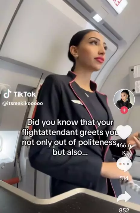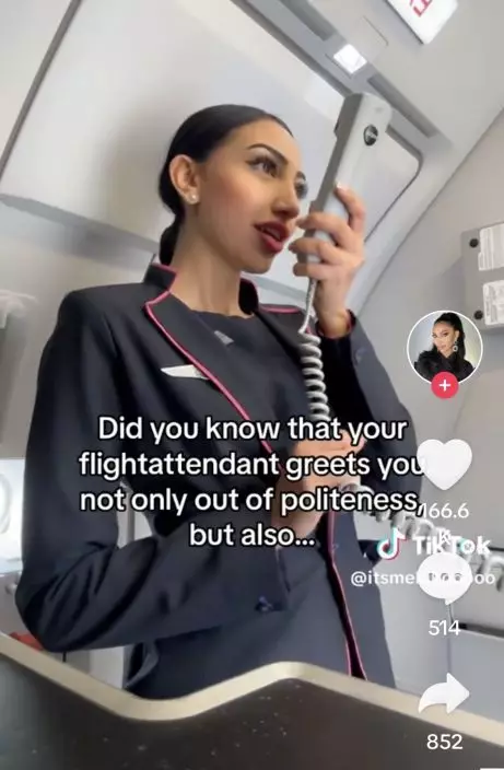 拉妮亞表示,當旅客踏入機艙時,總能看見空服員站在艙門前向每一位乘客熱情打招呼。她指出,此舉並不是單單出於禮貌或友好,而是為了親眼、面對面地評估乘客的情況。
