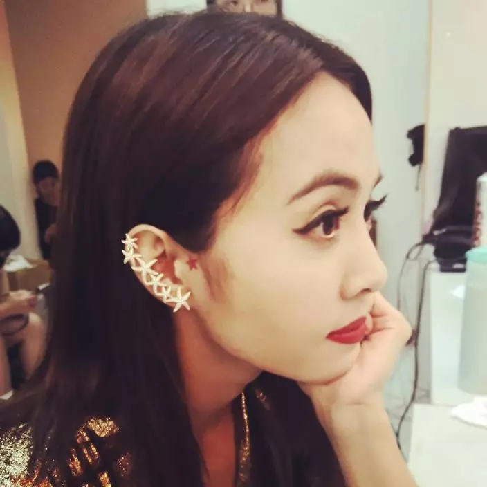 台灣天后蔡依林昨日剛滿36歲,一大清早就在facebook大曬超靚側臉照,右耳有一排六個五角星耳環,還大方展示最新紅色星星紋身,留言道:「滿天星星星。」