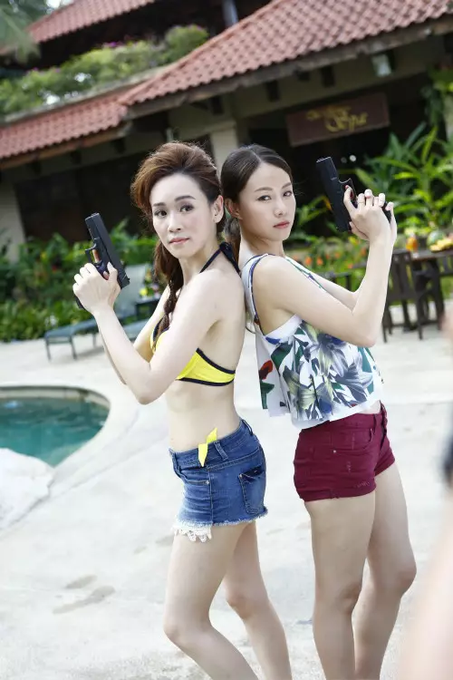 新片《辣警霸王花》早前在泰國酒店拍攝泳池「放蛇」一幕,多位主演比堅尼上陣,上演爆火槍戰,Jessica C噴血出水芙蓉,楊思琦做人母依然火辣,鄧麗欣則相對密實,背心短褲show英姿。