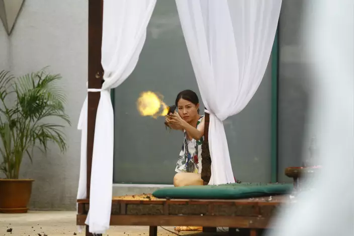 幾位靚女見目標出現,隨即在泳池展開激烈槍戰,生死肉搏,思琦亦唔錫身,親身拍攝出拳又起腳的鏡頭,由於打得投入,更不慎掛彩整傷手指。