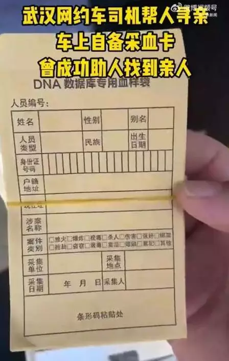 武漢一名網約車司機因自己曾經「被拐」的經歷,自購採血卡幫人尋親獲盛讚。