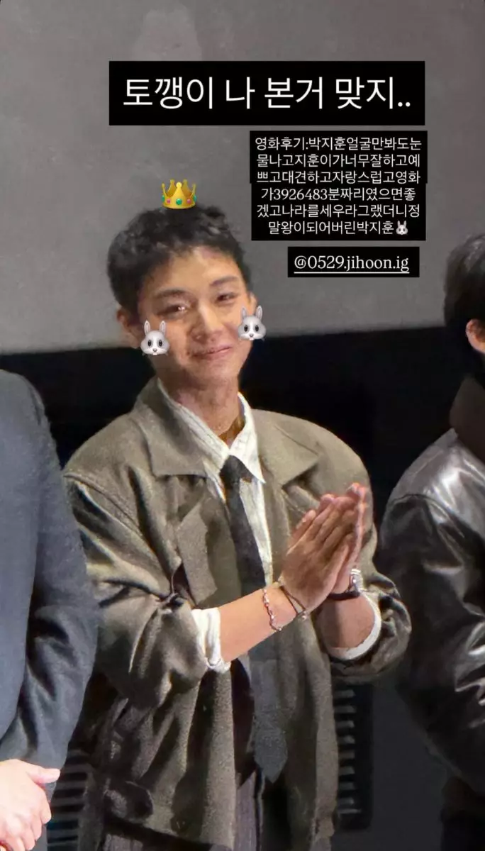 尹智聖大讚朴志訓的演技。尹智聖限時動態截圖
