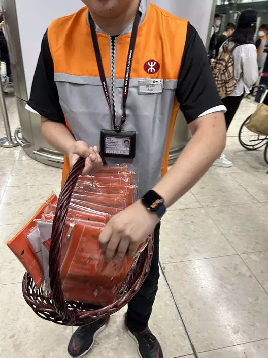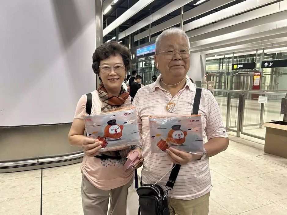 首班滬港動臥列車啟航,港鐵發送禮物給乘客。(巴士的報記者攝)