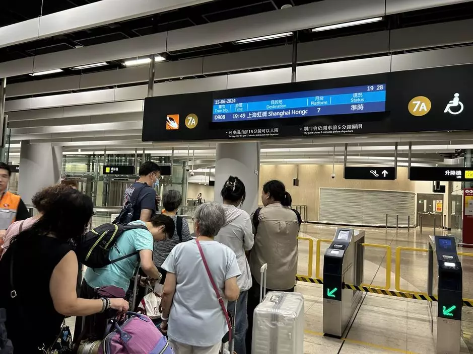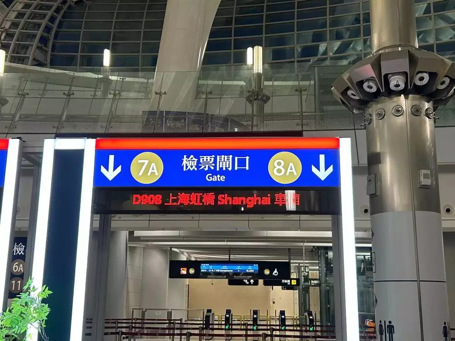 高鐵香港段開往上海虹橋站的動臥列車首發,圖為西九龍站檢票閘口。(巴士的報記者攝)