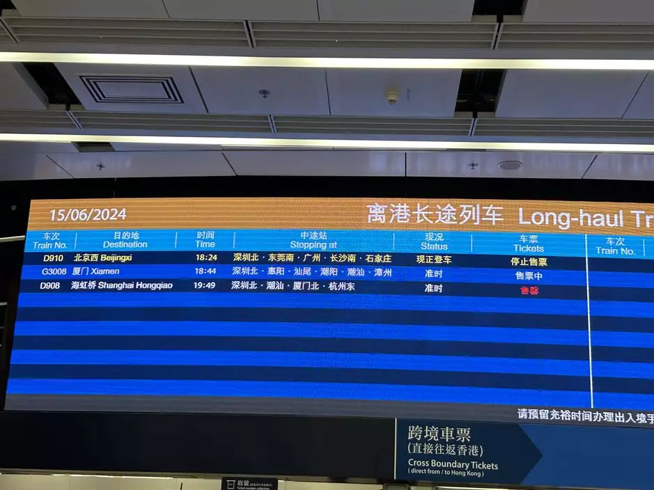 首班前往上海的高鐵臥鋪列車,將於晚上7時49分開出,明早(16日)6時45分抵達上海虹橋,車程約11個小時。列車途經4個站點,包括深圳北、潮汕、廈門北、杭州東。