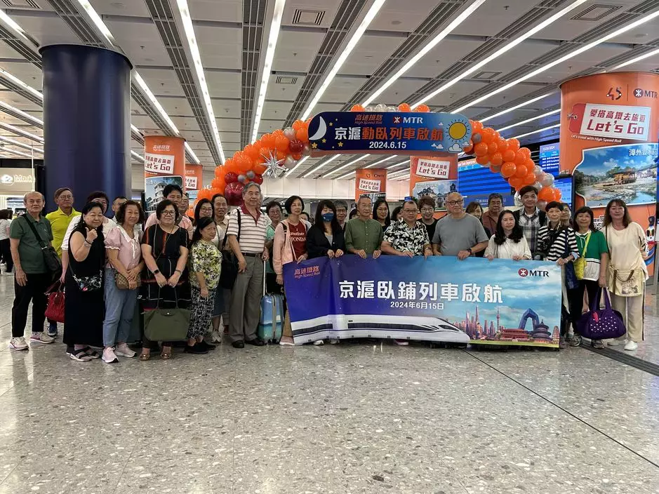 跟團搭乘港滬首班動臥列車的陳先生(中)表示,以前都去過上海,但期待這次嘗試一下臥鋪特色。(巴士的報記者攝)