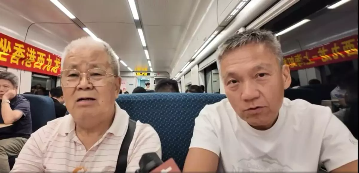 香港開往上海動臥列車首航,乘客喬先生、譚先生滿意列車情況。(巴士的報記者攝)