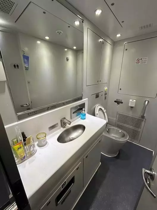 香港開往上海動臥列車首航,高級動臥臥鋪包廂的洗手間。(巴士的報記者攝)