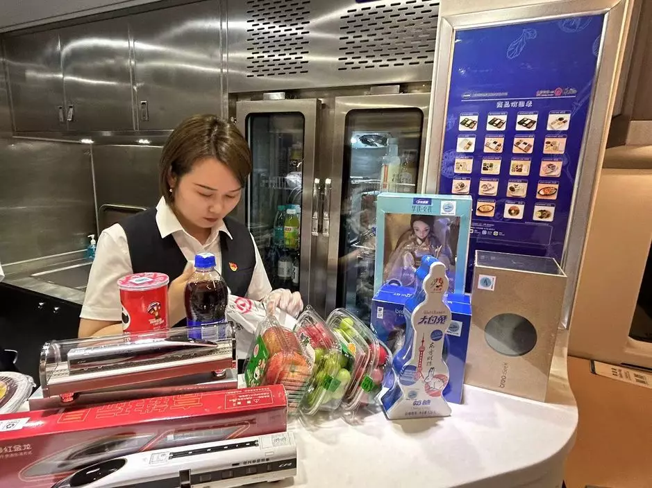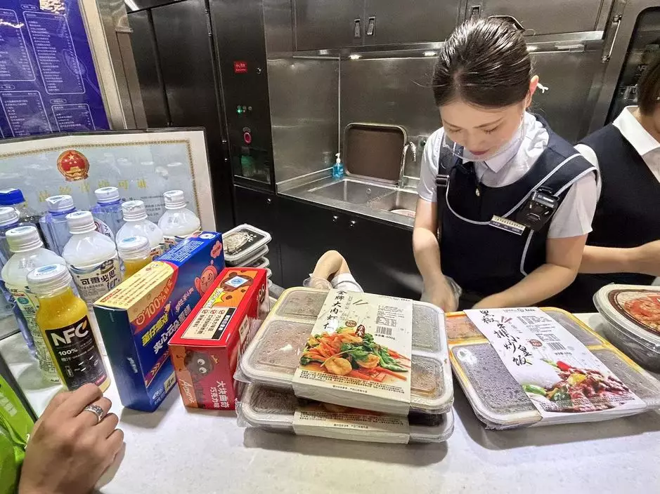 香港開往上海動臥列車首航,乘務員為乘客準備膳食。(巴士的報記者攝)