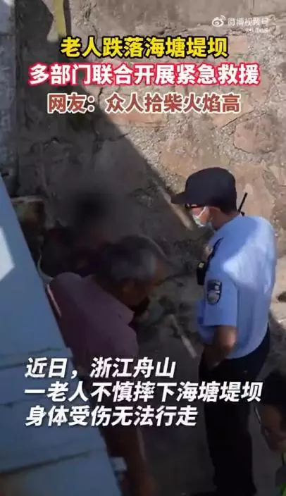 據《錢江晚報》報導,浙江舟山普陀山公安分局近期接獲民警報案,稱一名60多歲老婦人意外摔下海塘堤壩,急需救援。公安巡特警民警劉顯岳和同事獲報後迅速趕往現場,只見一名60多歲老婦被困在4米高的堤壩下,疑因受傷嚴重無法行走。