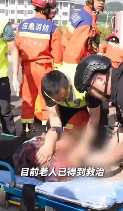 醫護人員趕到現場先為老婦進行初步檢查,結果發現老人身上有多處水腫,疑似骨折,但暫無生命危險。醫護人員對老婦進行了簡單包扎固定,劉顯岳則在一旁安慰老婦的情緒。