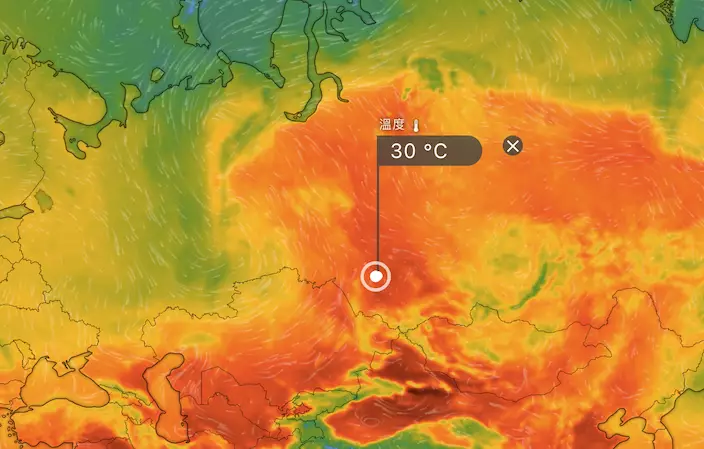 伊斯基季姆市氣溫達30度。 Windy圖片