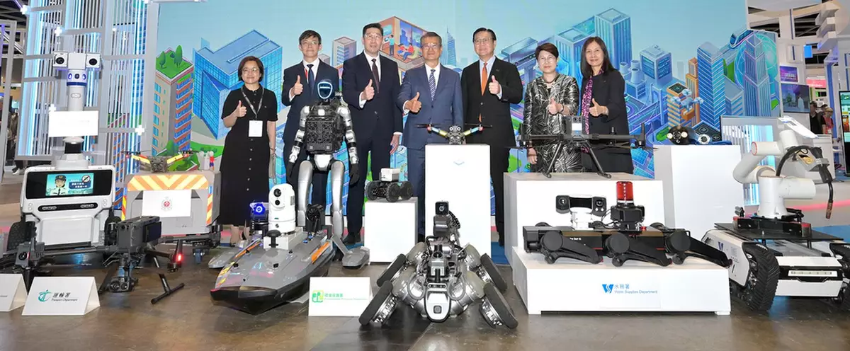 香港零售管理協會主席謝邱安儀(左五)、陳茂波、立法會議員邵家輝(右五)等主持啓動儀式。(政府新聞處圖片)