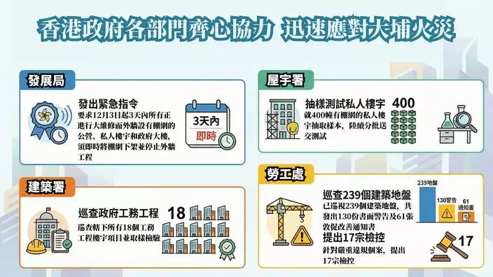 高人話,政府援助受災居民的工作不會停,各部門齊心協力,推出多項應對大火措施,幫助居民。多個紀律部隊協助救災及調查事件真相,多個部門加強巡查,避免災難再次發生。