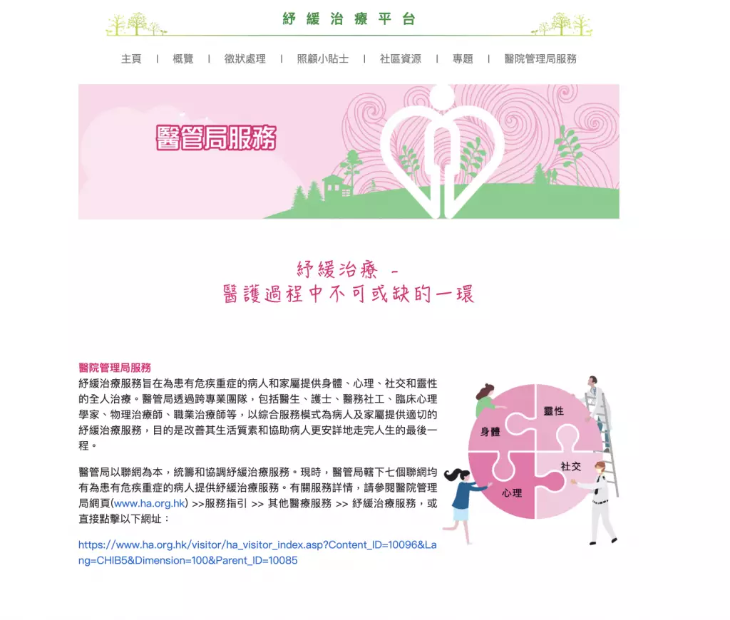 紓緩治療服務。網站截圖
