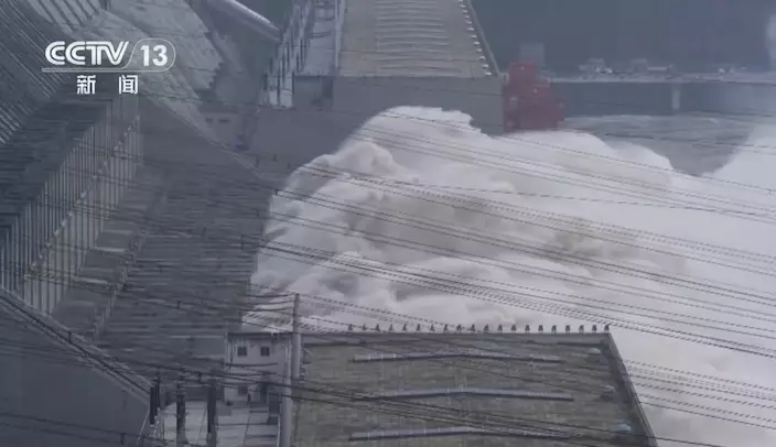 三峽水庫已開啟九孔洩洪加緊騰庫。央視截圖