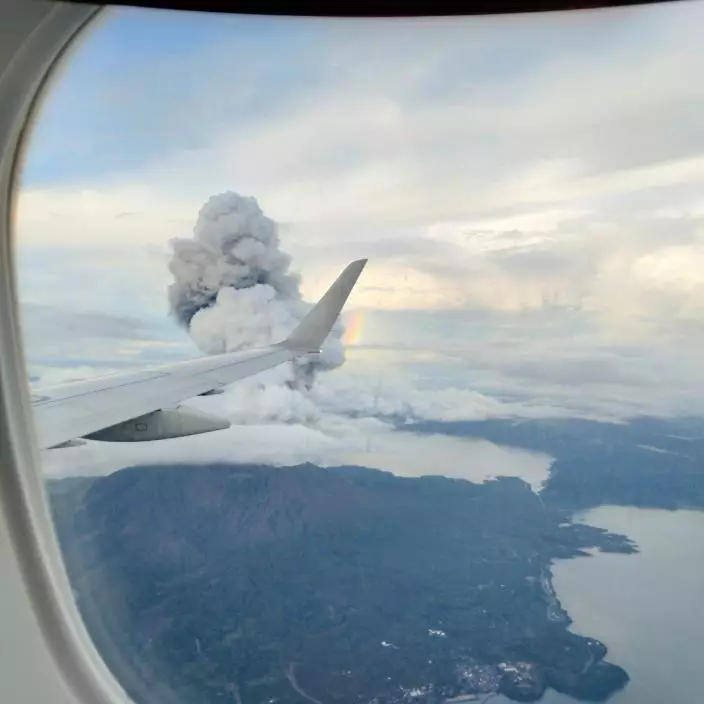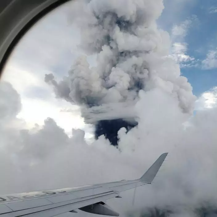 有位乘客見狀連忙將窗外的這一美景捕捉下來,他表示「當下沒有特別大的震動,機上也沒有發生恐慌」。影片中可見,火山灰即使是在飛機的窗外也顯而易見,令本來就多雲的天空視野變得更加不清楚。