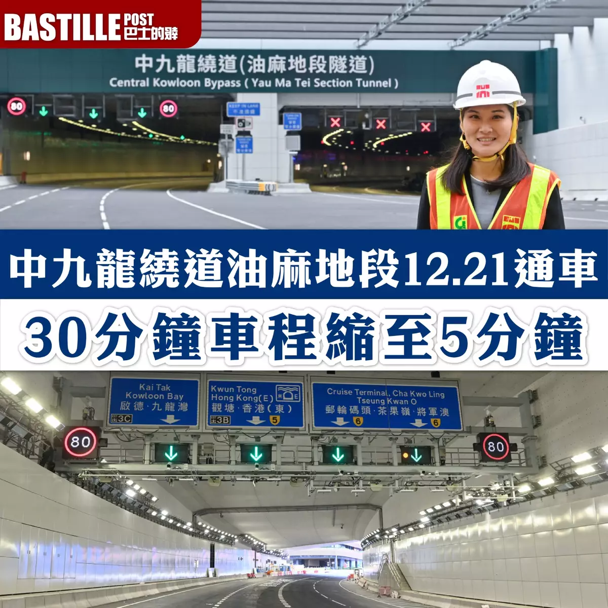 將於12月21日通車的中九龍繞道(油麻地段)全長4.7公里,其中3.9公里是雙程三線行車隧道。繞道一邊的出入口是東九龍啟德發展區和九龍灣道路網,另一邊則是西九龍油麻地交匯處。