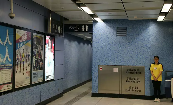 人有三急?洗手間設置於東面大堂,乘客如在西面大堂想去洗手間,需要落月台,步行一分鐘,再上東面大堂。