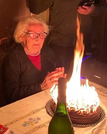 阿根廷一名95歲嫲嫲的家人為給她慶生在蛋糕上插滿95支蠟燭,全點燃後熊熊火焰向上竄升險釀火災。
