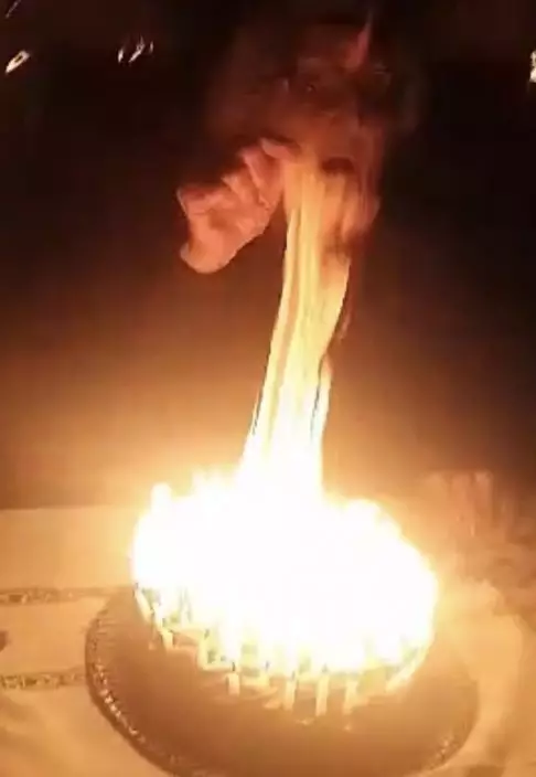 95支蠟燭點燃後蛋糕像極「火爐」