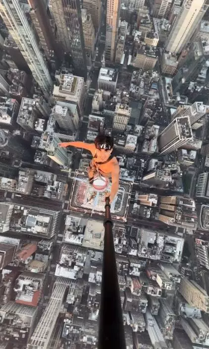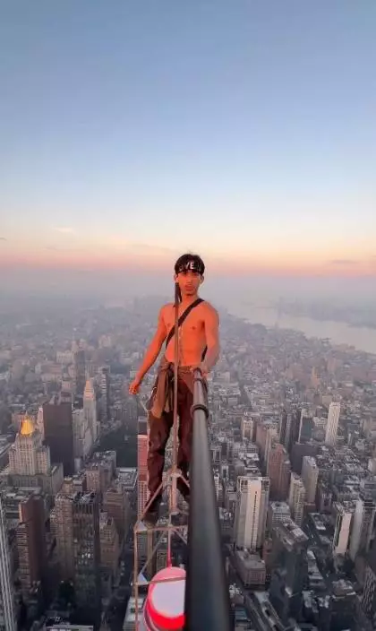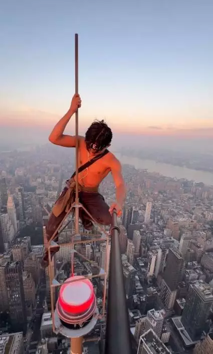 一名男子徒手攀上美國帝國大廈的天線桿頂,再用自拍桿以獨一無二的角度,記錄在紐約市的美景下自己的英姿。