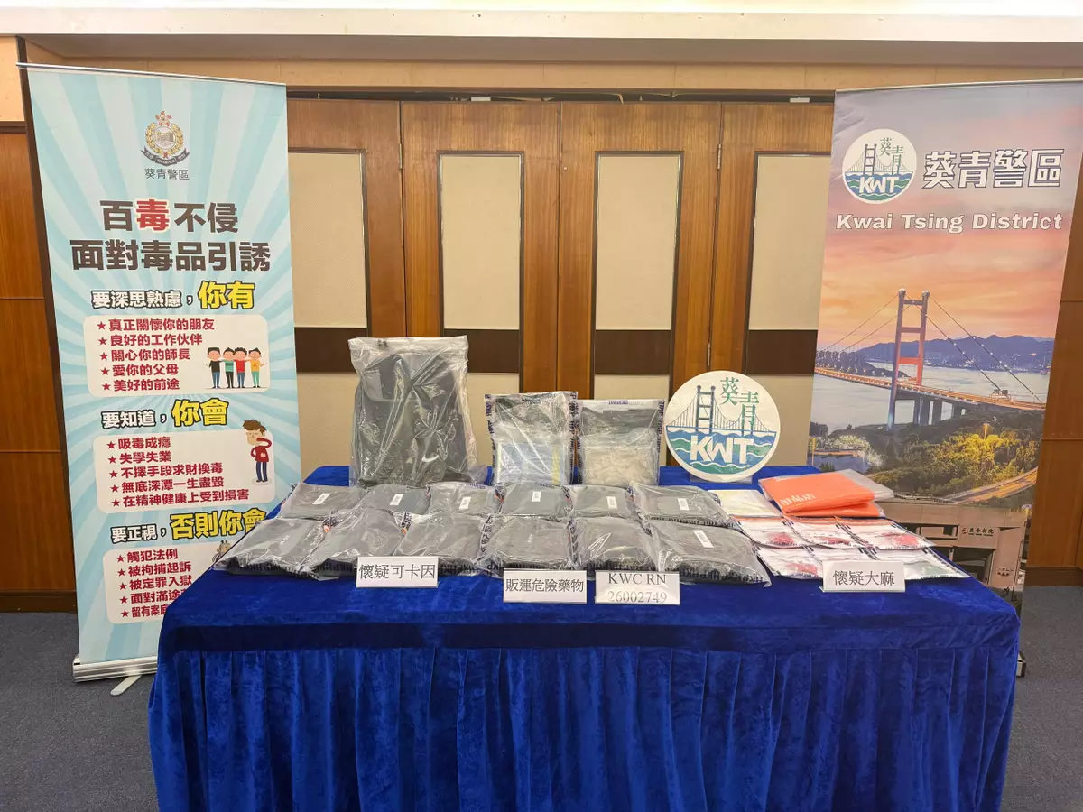 葵青警區特別職務隊主管黎可淇督察表示,根據情報搜集及深入調查,葵青警區特別職務隊在1月27日早上,在葵涌區展開反毒品行動。行動期間,人員於一個位於葵涌區的公共屋邨單位外截查一名可疑男子,並於其手上攜帶的一個環保袋內,搜出一磚懷疑可卡因。該名男子隨即被警方以「販運危險藥物」罪拘捕。