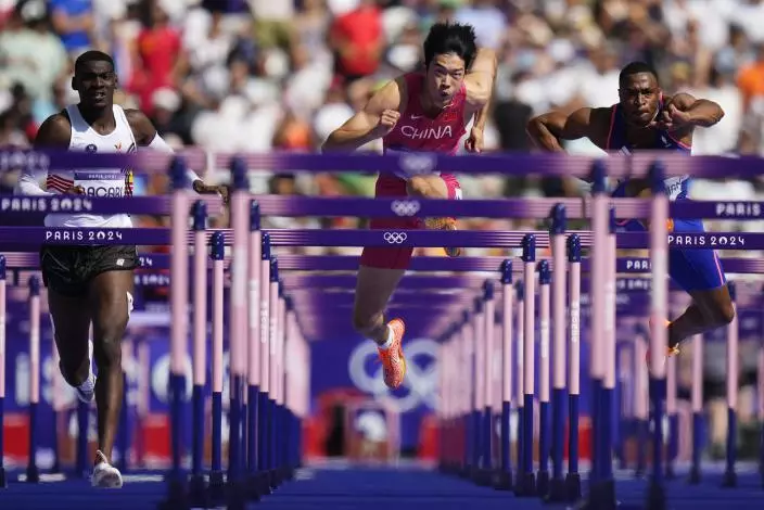 田徑項目男子110米跨欄復活賽,國家隊代表秦偉搏在復活賽第3組得首名,晉級準決賽。AP圖片
