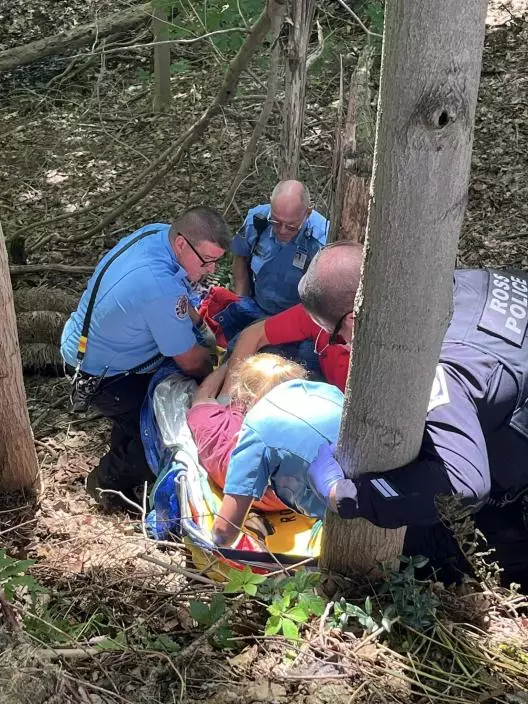 隨後,飼主被救援人員用繩索綁在拖車上,並被放上擔架帶回安全地帶,接著送往醫院急救。事後,救援人員表示,這隻金毛一直不願離開,直到確認主人平安就醫,考慮到當天氣溫炎熱,這隻狗狗最後獲得了零食和一大碗水作為獎勵。
