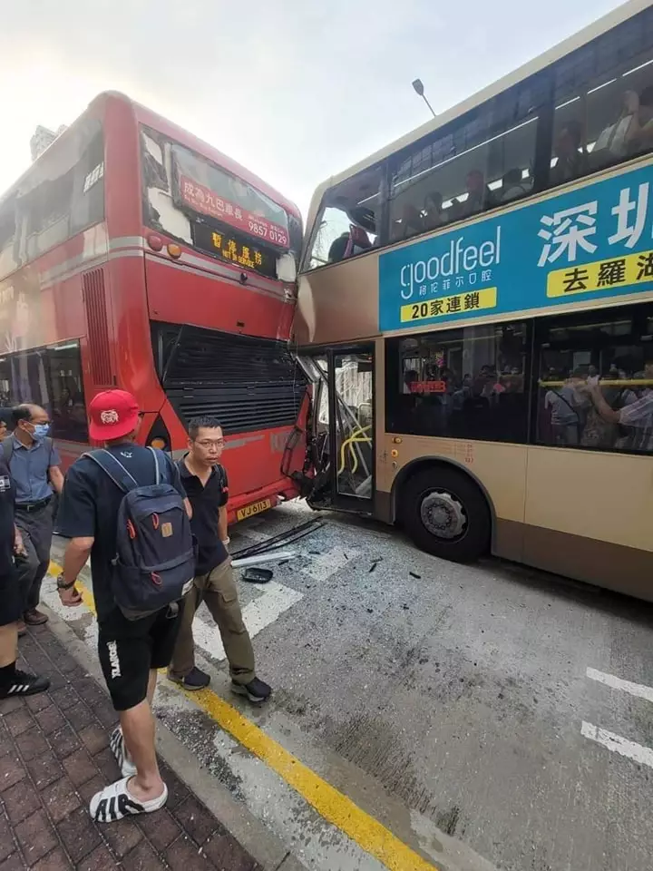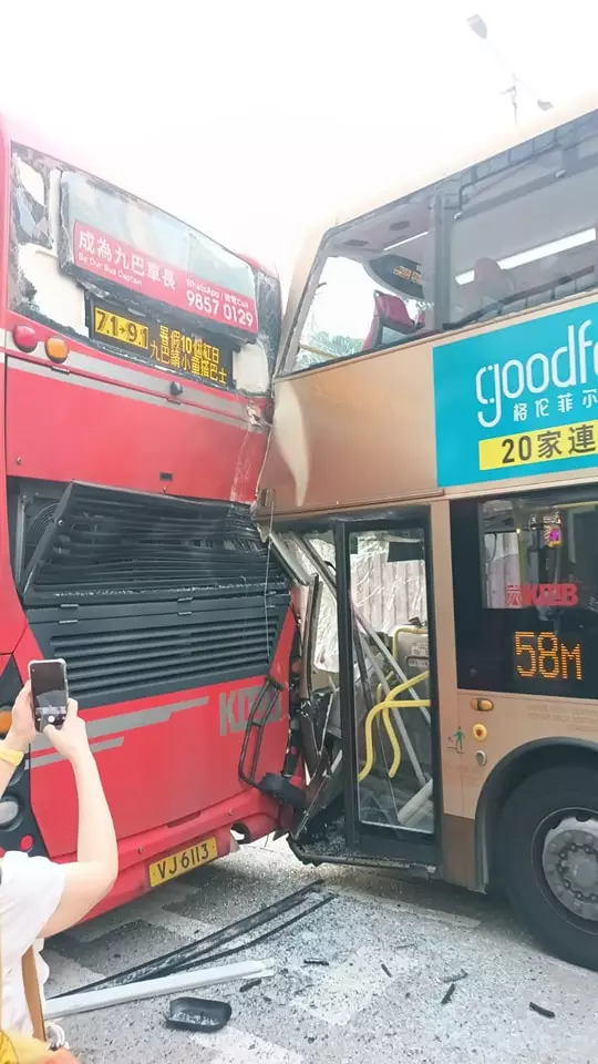 荃灣南豐紗廠對出,有兩輛巴士相撞,初步有3名乘客受輕傷。