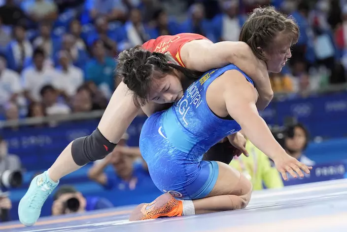 巴黎奧運摔跤女子自由式50公斤級銅牌賽,國家隊選手馮紫琪擊敗蒙古選手獲得銅牌。
