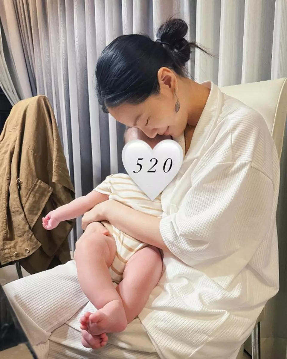 特地選在「520」這個充滿愛意的日子,曬出與寶寶相依的溫馨合照
