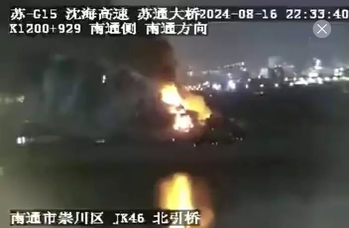 8月16日下午4時許,停泊在江蘇南通蘇通大橋下港池里的蘇聯紅海軍「明斯克」號航空母艦,突然冒出了滾滾濃煙。