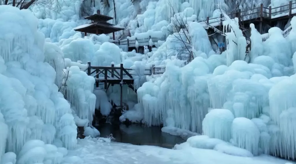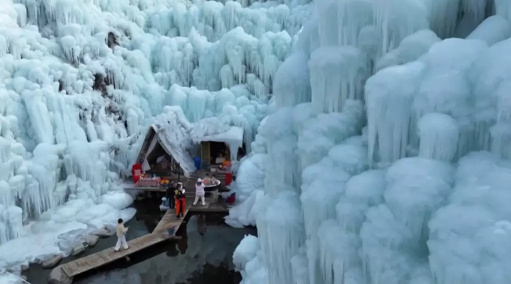 位於山東濟南的九如山風景區,憑藉峽谷地形與持續低溫形成高聳冰瀑,覆蓋面積約3萬平方米的冰柱與冰幕如水晶玻璃懸掛,成為冬季絕佳觀景地。今年景區創意融入「火」元素,在全園設置100多個爐具與木屋,營造「步步有爐,百米有屋」的獨特場景。遊客田玉娟表示:「體驗真的非常棒,遠超我的預期。」