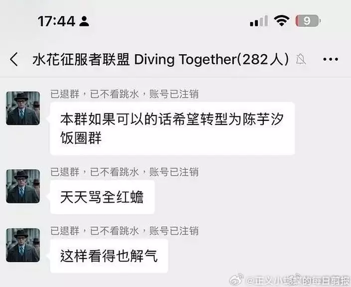 更令人驚訝的是,網傳該群組的成員包括全紅嬋的多名國家隊隊友,例如陳芋汐、昌雅妮、陳藝文等人。此外,群組內據稱還有《央視》記者及國際裁判。事件曝光後,隨即引起網民熱議,不少人對運動員可能面臨如此惡意的網絡環境感到痛心與憤怒。