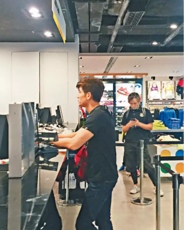 日前晚上8時,Philip偕男友人去尖沙咀shopping。黑衫牛仔褲波鞋的大隻仔,專睇運動衫褲,閒逛十五分鐘,即有收穫。其間有女fans興奮搵「貓仔」集郵,他態度友善O氹到班fans好開心。之後男神排隊畀錢,手瓜起的他一邊把玩斜孭袋、一邊睇電視播放的足球片段,睇到入晒神。最後碌卡找數,男神與友人去附近食飯醫肚,再獨自返家。