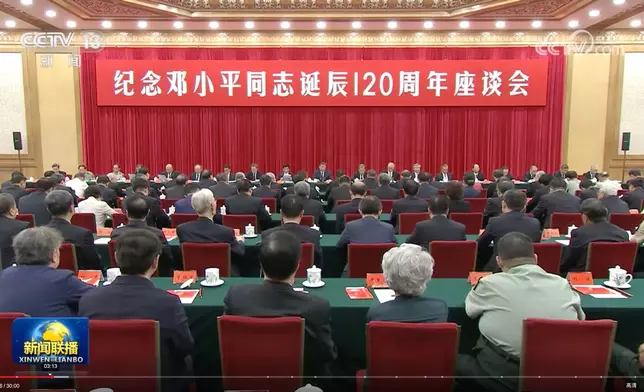 中共中央上午在人民大會堂舉行座談會,紀念已故領導人鄧小平誕辰120周年。中共總書記、國家主席、中央軍委主席習近平發表重要講話。央視新聞聯播畫面顯示,鄧小平長子鄧樸方出席座談會。
