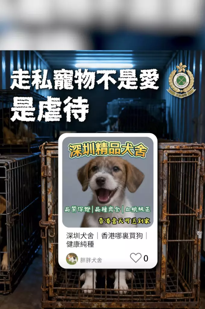 「Alpha」表示,「如果你幫襯自稱可以一日由內地送貓狗到香港嘅舖頭,你唔單止參與緊走私寵物,你就係走私嘅源頭,如果你愛我哋,記住:『走私唔係愛,係虐待』。」藉此呼籲市民勿購走私寵物。