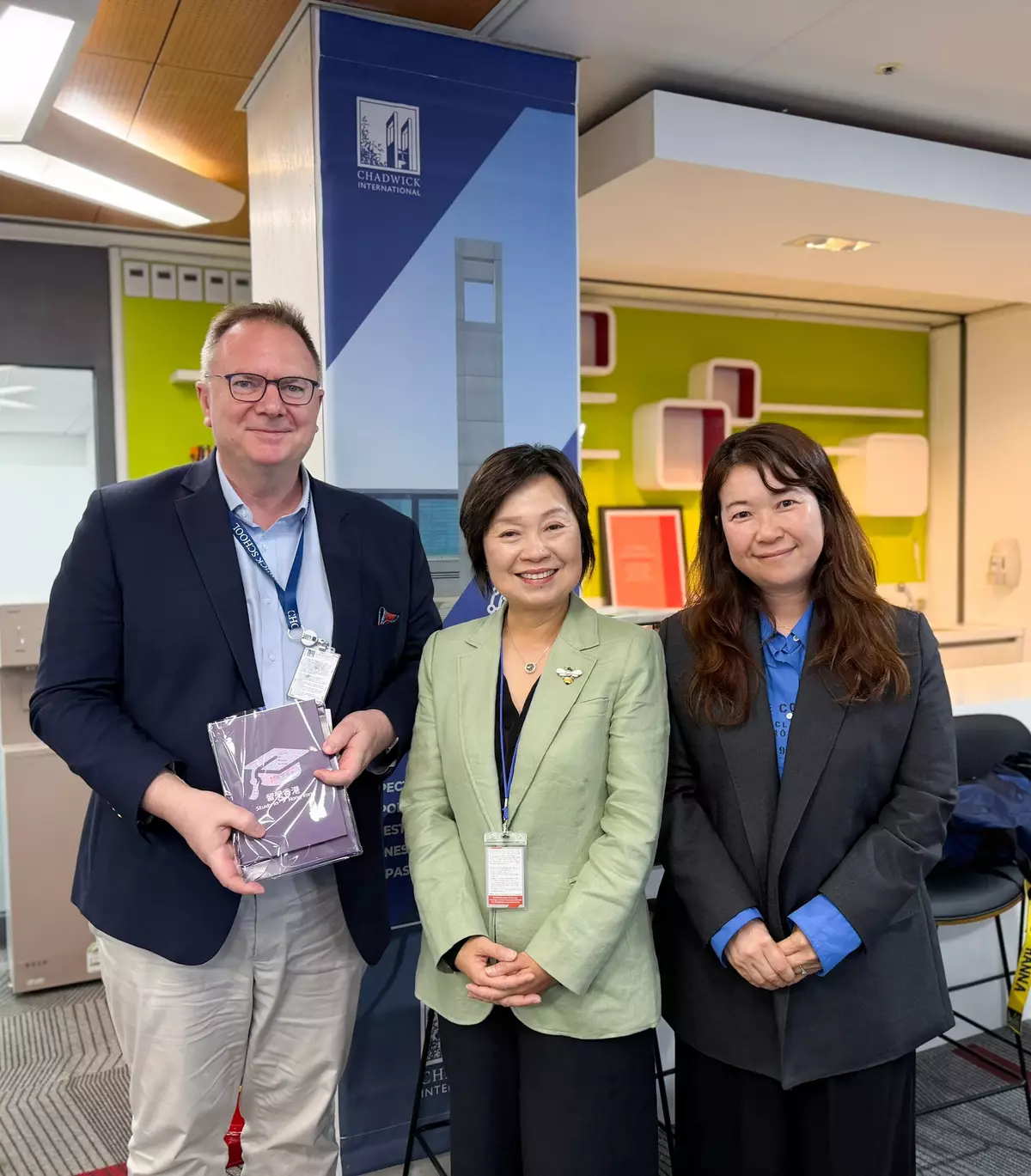 蔡若蓮之後到訪仁川的查德威克國際學校,與校長Ted Hill等代表會面,介紹香港高等教育發展最新情況,並闡述香港作為國際教育樞紐的優勢,包括國際化、多元化的學術氛圍,世界級基礎設施,以及擁有大量掌握良好兩文三語能力的人才,為各地學生提供優質的升學環境。