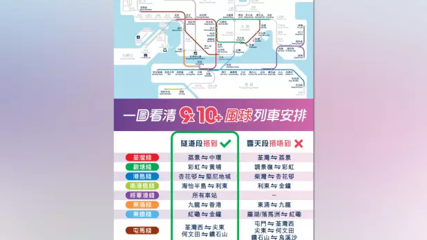在九號風球生效後所開出的列車班次均不會行駛露天段,以保障乘客和人員安全。(港鐵提供)