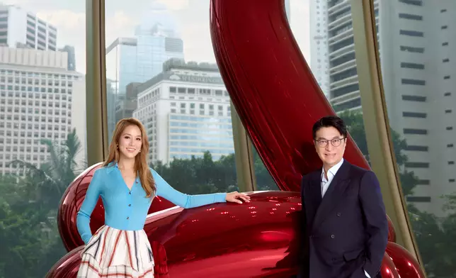 中環甲級商業項目The Henderson添上藝術養份,大堂中庭放置傑夫‧昆斯(Jeff Koons)的藝術品《氣球天鵝(紅色)》,恒基兆業地產集團主席李家誠及太太徐子淇和天鵝同框合影。