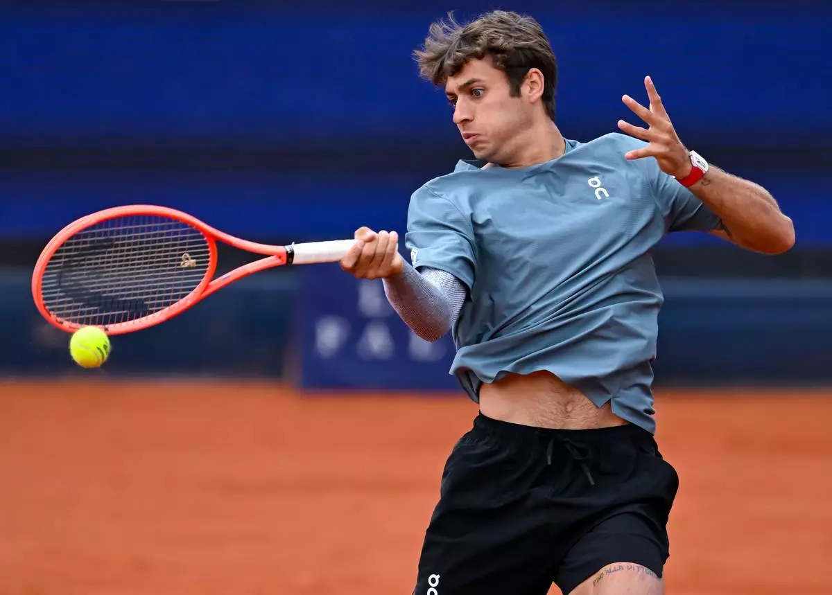 2026年4月19日周日,意大利球手高保利(Flavio Cobolli)在德國慕尼黑舉行的ATP巡迴賽男單決賽中,對陣美國球手舒爾頓(Ben Shelton)。 (Sven Hoppe/dpa via 美聯社圖片) AP圖片