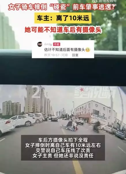 河南女子踩單車突然摔倒在地,指控離自己已有10米遠的汽車司機肇事逃逸,警方睇過車cam影片卻咁判責惹議!