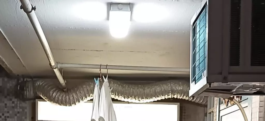 相中可見一單位外牆掛滿衣物,氣窗冷氣機以水桶接載滴水,更有一條抽油煙機排氣喉如「長蛇」橫跨整個走廊天花,被形容為「回到70年代」的奇景。網民笑指住戶是「空間利用高手」,但也擔憂水桶滿瀉或衣物夜間飄揚存在安全隱患。
