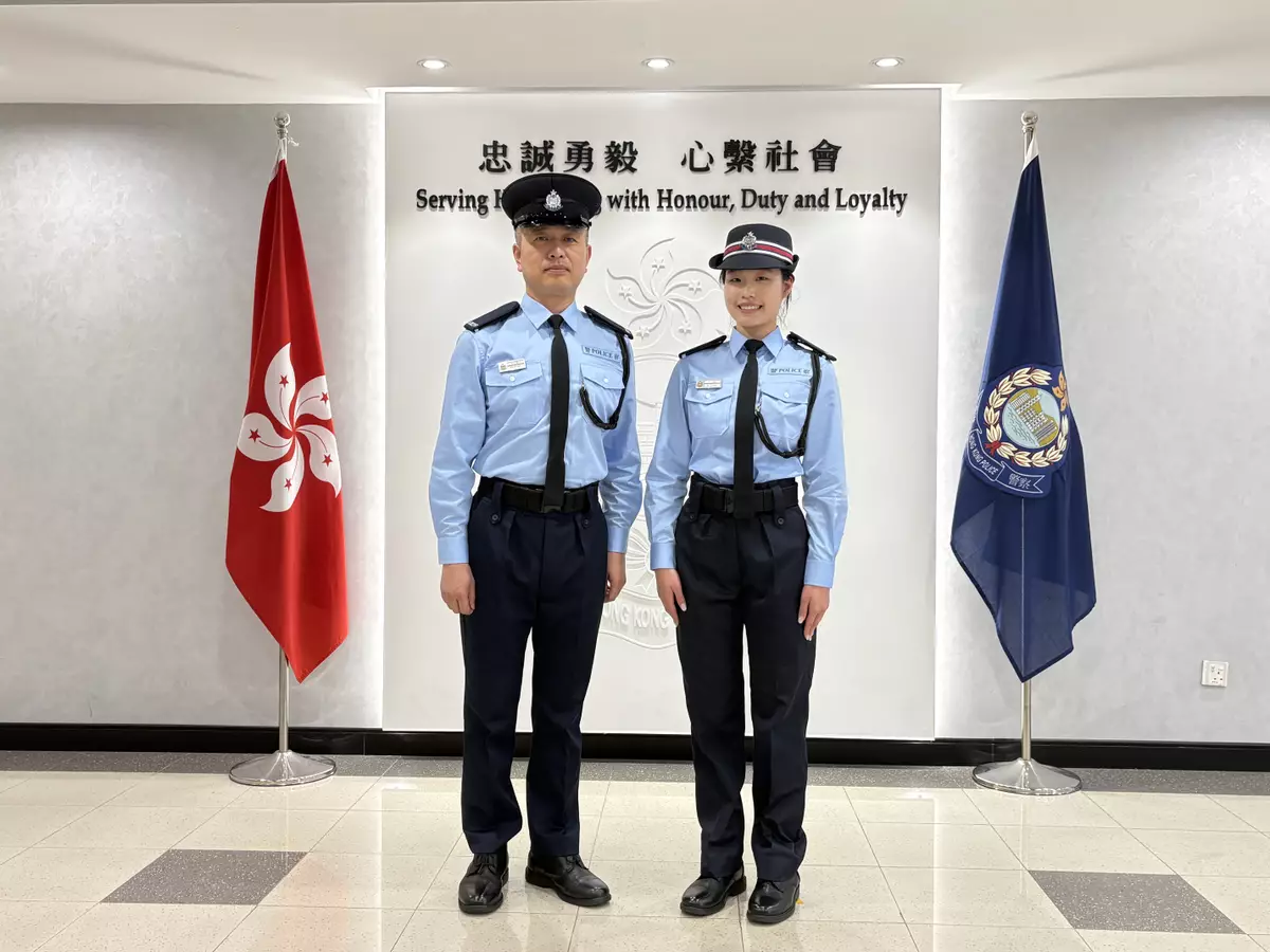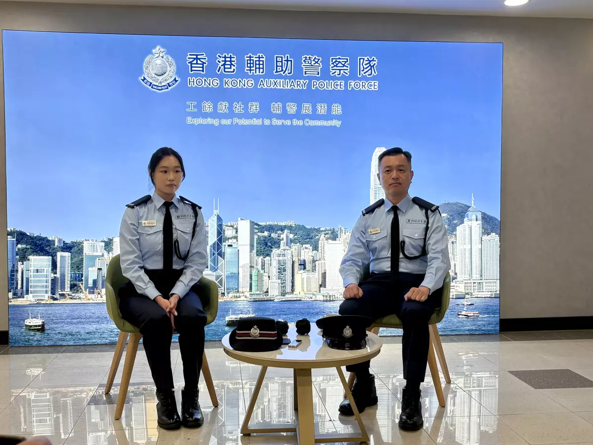 (左起)輔警警員施天藝和大學生輔警毆天穎。巴士的報記者攝