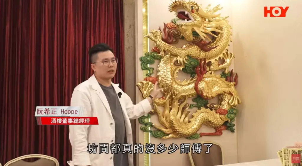 「這一對(龍鳳)是1984年擺到現在了,就算我們想要修補金箔,坊間真的沒有多少師傅了。」酒樓董事總經理阮希正今年接手家族的酒樓生意,成為第三代經營者,他說酒樓有「老字號」招牌,一定要傳承的就是手工點心,他還說很多食客光顧多年,堅持傳統也就是想保留食客熟悉的味道,「有些食客是從我爺爺經營酒樓時來這裡飲茶到現在,有些人就是在石硤尾邨長大的,很多公公婆婆都熟習了環境來這裡飲茶」,曾經有食客向他表示「酒樓是一個家」,人生有很多重要時刻都是在酒樓度過。
