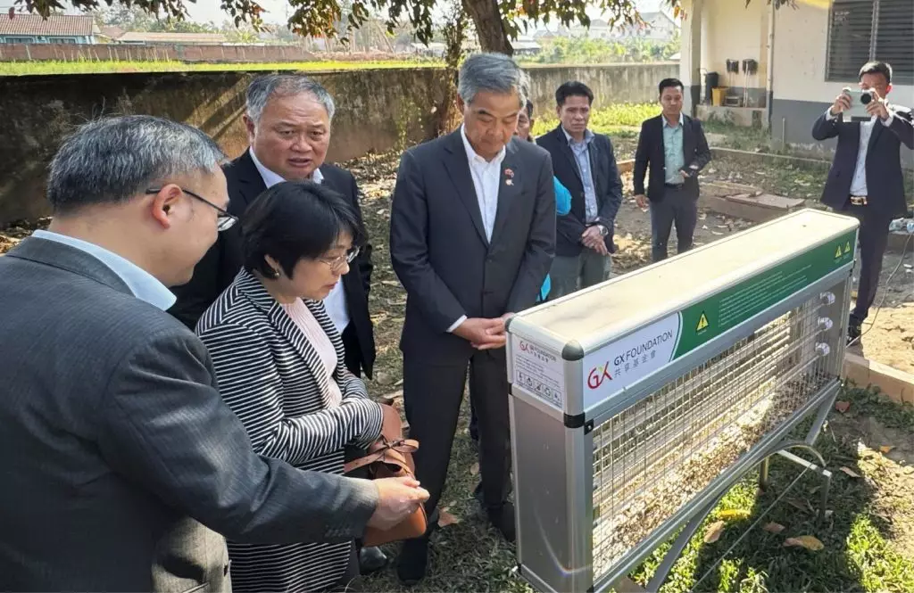 主席梁振英與中國駐老撾大使方虹共同視察安裝在當地的滅蚊燈。