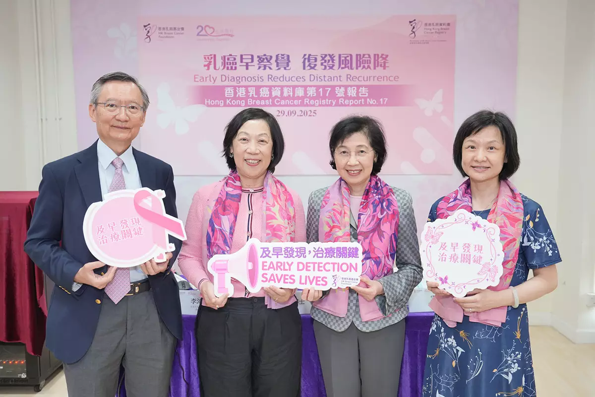 香港乳癌基金會轄下的香港乳癌資料庫今日發表《香港乳癌資料庫第 17 號報告》,研究發現年輕或確診較高期數的乳癌患者有更高遠端復發風險,即是乳癌擴散至身體其他器官,另外,高級別(即生長速度較快)腫瘤細胞和有淋巴血管侵犯,也與日後遠端復發風險有關。在不同乳癌類別中,三陰性乳癌患者較早機會出現復發,而且其三年遠端復發後存活分佈亦明顯較差。香港乳癌基金會創會人、外科專科醫生張淑儀醫生強調:「研究結果反映及早發現乳癌至關重要,而透過識別遠端復發高風險患者,可針對性地制定治療策略,以降低復發機率。」